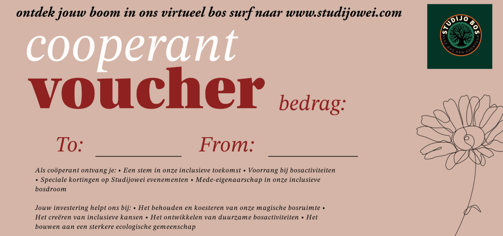Verras iemand speciaal met een coöperant-aandeel in ons magische Studijowei-bos en steun ons inclusieve jeugdproject!